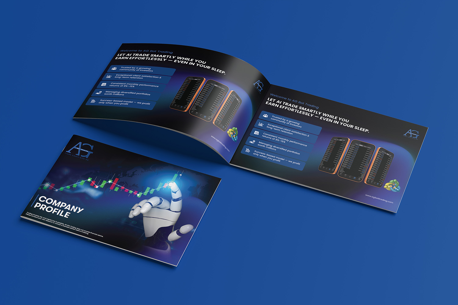 We created the company profile design for AG Bot Trading, crafted to present the brand’s advanced technology, trading solutions, and global market expertise with clarity and impact.