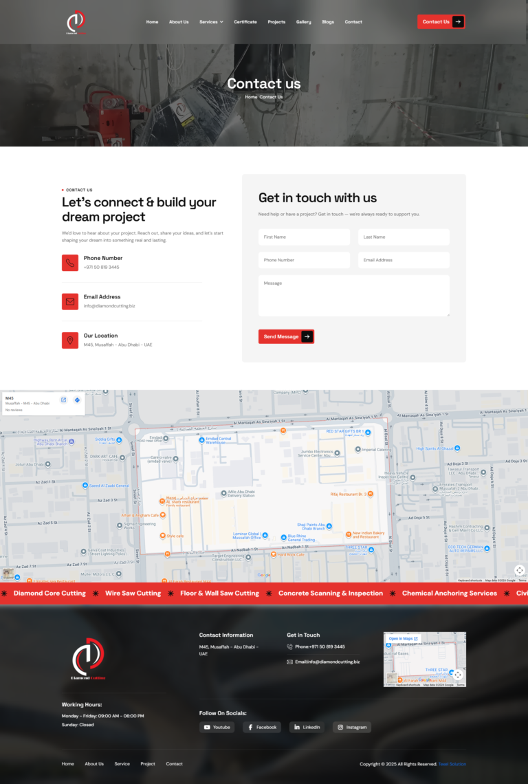 Our website design for Diamond Cutting UAE was developed to reflect precision, reliability, and technical expertise in the construction industry. With a structured layout, strong visuals, and service-focused sections, the website delivers a clear and user-friendly experience for visitors.