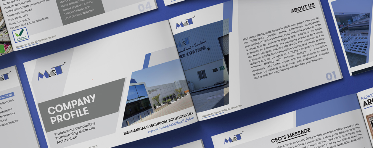 The design focuses on clean layouts, structured content, and a strong visual hierarchy, ensuring the profile communicates professionalism, reliability, and trust. Each section is thoughtfully organized to highlight services, projects, and company values while maintaining a modern and engaging look.